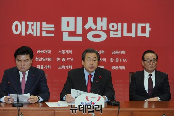 새누리당 김무성 대표가 21일 서울 영등포구 여의도 국회에서 열린 최고위원회의에서 모두발언을 하고 있다.