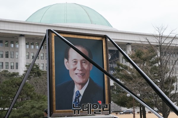 고(故) 이만섭 전 국회의장의 국회장 영결식이 엄수된 18일 고인의 영정을 앞세운 운구차량이 국회 의원회관 영결식장으로 들어서고 있다.