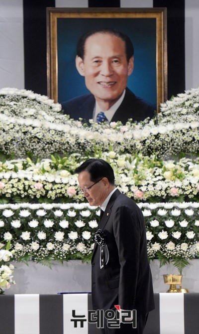 17일 서울 여의도 국회 의원회관에서 열린 故 이만섭 국회의장 국회장 영결식에 참석한 정의화 국회의장이 영결사를 고인 영전에 올린 후 내려오고 있다.