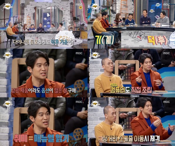 그룹 다이나믹 듀오의 최자가 '덕후'의 모습을 드러냈다.11일 오후 방송된 MBC 예능프로그램 '능력자들'에서이날 방송에는 그룹 다이나믹 듀오의 최자가 출연해 자신이 심취해 있는 분야에 대해 털어놨다.최자는 "같은 제품이라도 옵션이 많은 것을 구매한다"라며 "컴퓨터도 직접 조립한다"라고 전해 평범치 않은 모습을 보였다.이어 그는 "취미가 메뉴얼 읽기다. 장거리 스케줄 이동 때 좋다"라고 말해 진정한 '기계덕후'의 면모를 보였다.한편 '능력자들'은 잠자고 있던 덕심(心)을 일깨워 새로운 '덕후 문화'를 만드는 취향 존중 프로그램이다. 매주 금요일 오후 9시 30분 방송.