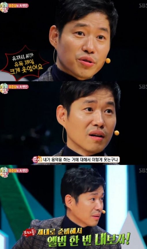 이날 방송에서 유준상은 MC 광희의 "음악을 시작한 이유가 유재석 선배님 때문이라고 들었다"는 질문에 "예전에 KBS2 ‘해피투게더’에 나가서 자작곡을 들려줬는데 유재석이 유독 크게 웃더라"고 답했다.