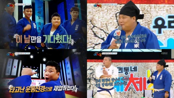22일 오후 방송된 KBS 2TV '우리동네 예체능' 136회에서는 방송 관계자들로 구성된 '연예가 유도팀'을 여섯 번째 공식 대결 상대로 만나 치열한 각축전을 펼치는 '우리동네 유도부'의 모습이 전파를 탔다.