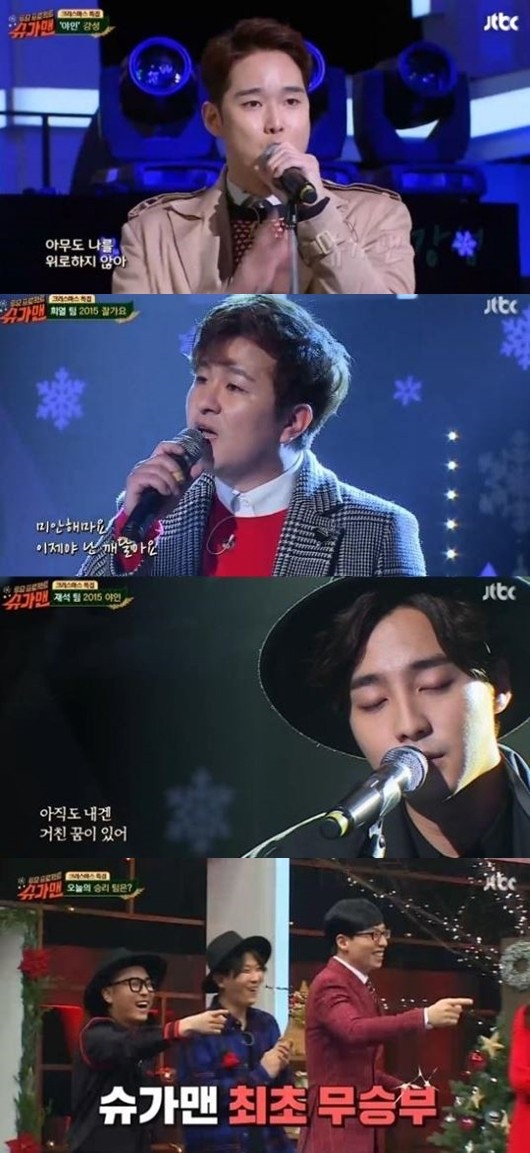 유희열팀 쇼맨으로 등장한 허각 역시 만만치 않았다. 허각은 정재욱의 '잘가요'를 크리스마스 느낌으로 풀어내 시청자들에게 따뜻한 선물을 선사했다. 특히 허각의 감미로운 보이스와 폭발적인 가창력으로 무대를 압도했다.