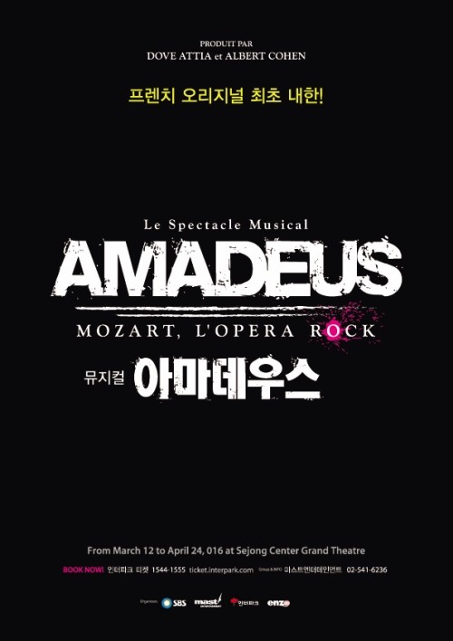 뮤지컬 '아마데우스'는 2016년 3월 12일부터 4월 24일까지 세종문화회관 대극장에서 공연하며, 오는 28일 오후 2시부터 예매사이트 인터파크를 통해 1차 티켓 판매를 시작한다.