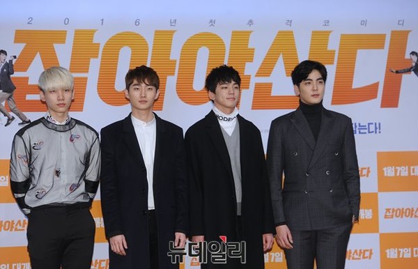 영화 '잡아야 산다' 언론시사회가 서울 광진구 롯데시네마 건대입구점에서 열렸다. 이날 시사회에는 배우 김승우, 김정태, 한상혁, 신강우, 김민규, 문용석, 오인천 감독이 참석해 간담회와 포토타임을 진행했다.영화 '잡아야 산다'는 잘나가는 CEO이자 일명 ‘쌍칼’ 승주(김승우 분)와 매일 허탕만 치는 강력계 허탕 형사 정택(김정태 분)이 겁 없는 꽃고딩 4인방에게 중요한 ‘그것’을 빼앗기면서 벌어지는 예측 불허의 심야 추격전을 담은 추격 코미디다. 2016년 1월 7일 개봉 예정이다.