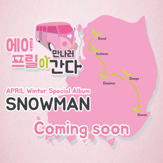 에이프릴의 공식 SNS채널을 통해 공개된 이미지는 ‘에이프릴이 만나러 갑니다’ 라는 문구와 함께 대한민국 지도에 새싹 모양으로 서울, 인천, 대전, 대구, 부산의 지역이 표시되어 궁금증을 자아냈다.
