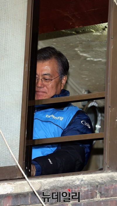 • 더불어민주당 문재인 대표가 30일 오후 서울 용산구 동자동 쪽방촌을 방문해 단열재를 붙이는 등 주거취약계층 겨울나기 지원활동을 하고 있다.