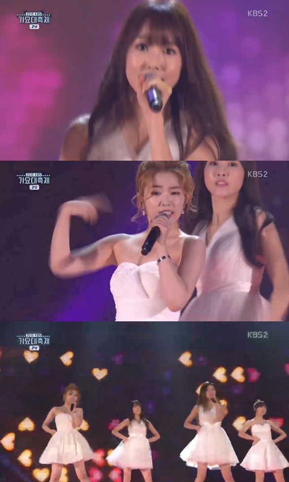 그룹 레드벨벳의 아이린-슬기와 여자친구의 예린-유주가 30일 오후 서울시 구로구 고척스카이돔에서 열린 ‘2015 KBS 가요대축제’에 참석, 의 ‘난 사랑을 아직 몰라’ 특별무대를 선보였다.