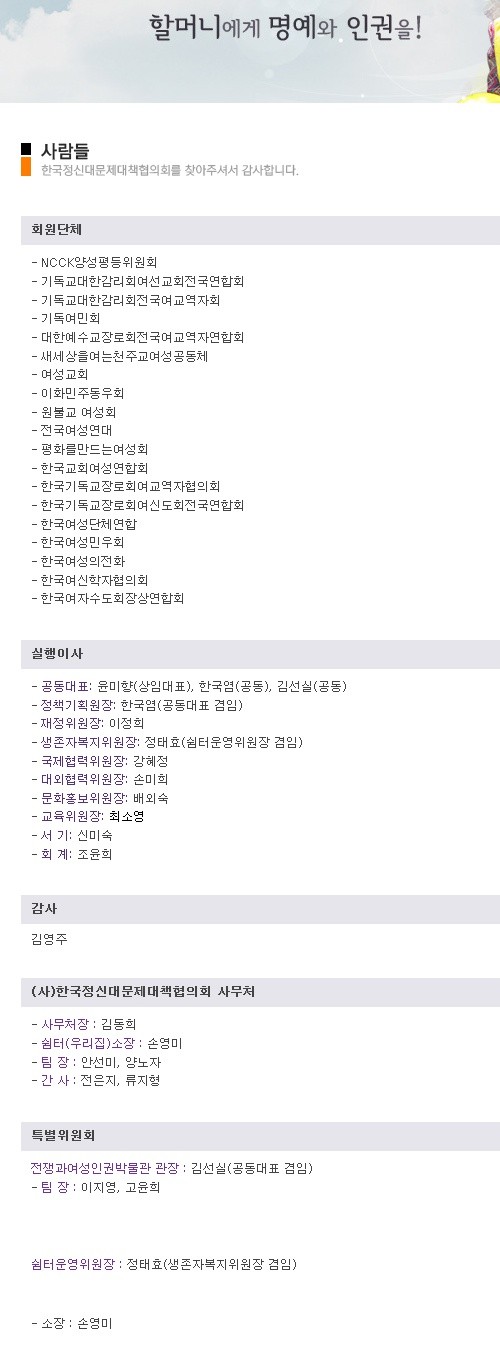 정대협(한국정신대문제대책협의회)을 움직이는 사람들주도 세력과 그 주변인물 중에는 과거 학생운동과 노동운동 등에 가담했던 이들이 많다.