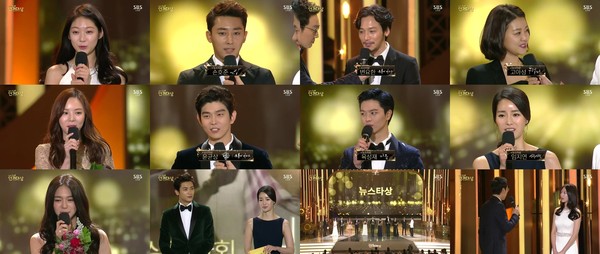 이어 고아성은 “이런 의미있는 상 받아서 기쁘고요, 함께 한 선배님들 덕에 이 상 받은 것 같습니다”, 이열음은 “요번에 많은 선배님들과 작업을 하게 됐는데 SBS에서 두 작품을 하게 해주셔서 감사합니다. 새해복 많이 받으세요”, 윤균상은 “생각했던 것 보다 훨씬 더 떨리는데요, 올해 좋은 사람, 좋은 작품 받게 돼서 감사합니다. 제 가슴속에 머릿속에 계신 분들 너무 감사하고 사랑합니다”라고 말했다.