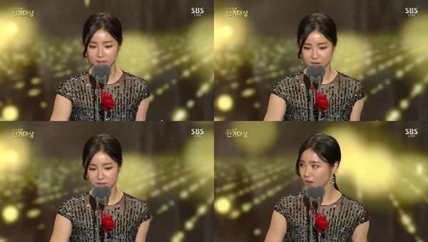 가수 겸 배우 박유천이 31일 오후 서울 강남구 삼성동 코엑스서 열린 '2015 SBS 연기대상'에서 미니시리즈 부문 최우수연기상을 받았다.이날 군복무중인 박유천을 대신해 신세경이 대리수상했다.신세경은 "박유천씨가 군복무중인 관계로 대신 수상을 하게 됐다. 영광의 순간을 대신하게 돼서 기쁘다. 이 상은 잘 전달하도록 하겠다"고 전했다.이어 신세경은 "'냄새를 보는 소녀'를 사랑해주신 시청자 여러분께 감사하다"라고 덧붙였다.한편 '2015 SBS 연기대상'에서는 공동 MC 유준상 이휘재 임지연이 진행을 맡았다.