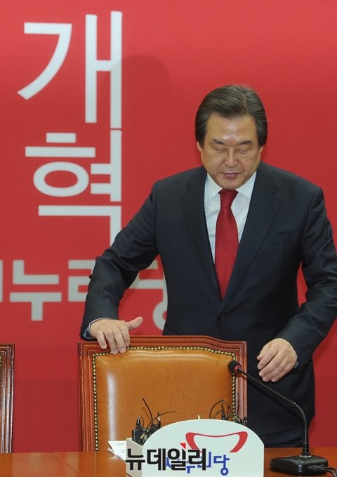 새누리당 김무성 대표가 4일 서울 영등포구 여의도 국회에서 열린 최고위원회의에 참석해 자리에 착석하고 있다.