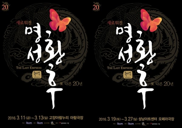 지난해 7월 서울 예술의전당에서 화려한 막을 올렸던 20주년 뮤지컬 '명성황후'가 지방 투어를 마치고 오는 3월 성남과 고양에서 마지막 공연을 펼친다.