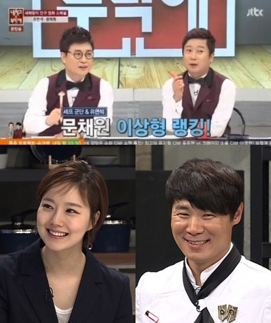 배우 문채원이 지난 4일 방송된 종합편성채널 JTBC 예능프로그램 '냉장고를 부탁해'에서 셰프 군단과 유연석 사이에서 이상형 순위를 꼽았다.이날 MC 김성주가 문채원에게 셰프 군단과 유연석 중에 이상형 1,2,3위를 꼽아달라고 부탁했다문채원은 먼저 3위로 최현석 셰프를 꼽았고, 최현석은 기쁨의 세리머니로 화려한 옆돌기를 선보였다.이어 2위는 샘킴 셰프가 선택됐다. 샘킴 셰프는 앞서 최현석 셰프가 했던 옆돌기 세리머니를 똑같이 따라해 모두를 폭소케했다.문채원은 이상형 1위로 유연석을 꼽아 옆돌기 세리머니를 요구했다. 대신 유연석은 문채원에게 뮤지컬 속 노래 한 구절을 선물했다.한편 문채원과 유연이 출연하는 영화 '그날의 분위기'(감독 조규장)는 KTX에서 우연히 처음 만난 '안 하는 거 참 많은' 철벽녀와 '맘만 먹으면 다 되는' 맹공남, 그들이 하룻밤을 걸고 벌이는 밀당 연애담을 그린 2016년 첫 번째 로맨틱 코미디이다. 오는 14일 개봉.