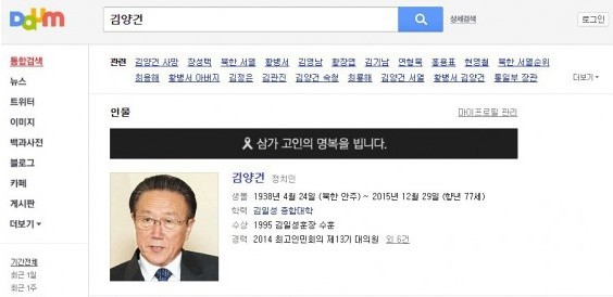 포털사이트 다음을 운영하는 카카오가 구랍 30일 북한 김양건 대남비서 겸 통일전선부장의 인물 소개란에 "삼가 고인의 명복을 빕니다"라는 '애도의 글'을 올렸던 사실이 뒤늦게 전해져 파문이 일고 있다.