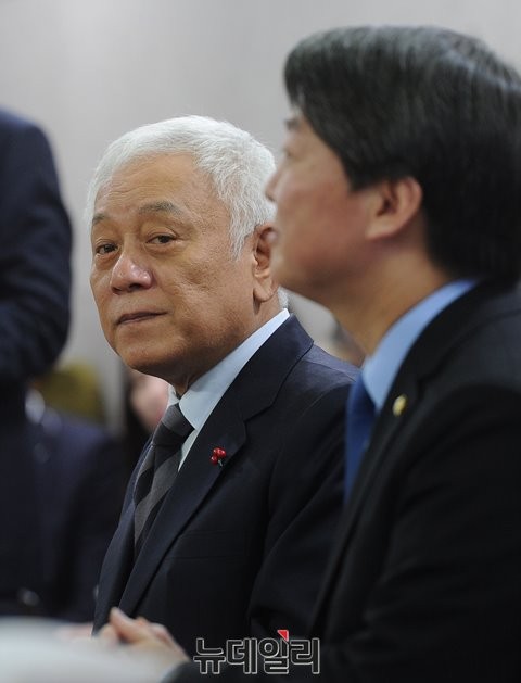 김한길 안철수 무소속 의원이 7일 서울 여의도 국회 의원회관에서 오찬회동을 마친 후 기자회견을 갖고 있다.