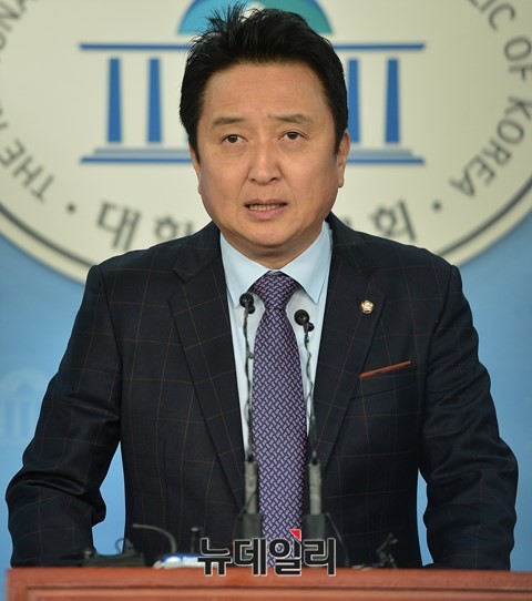 더불어민주당 김영환 의원이 8일 오전 국회기자회견장에서 기자회견을 열고 "양심과 소신에 따라 더불어민주당을 떠난다"고 밝혔다. 김 의원이 기자회견문을 발표하고 있다.