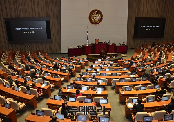 제338회 국회 제3차 본회의가 8일 오후 국회에서 진행됐다. 이날 본회의에서 '북한의 제4차 핵실험 규탄 및 핵 폐기 촉구결의안'이 만장일치로 통과됐다.