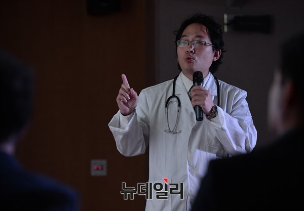 '공정한 병역의무 이행을 위한 국민총협의회(이하 병국총)'이 주최하는 '박원순 시장 아들 박주신씨 병역비리 의혹 대국민 보고대회(이하 보고대회)'가 9일 오후 대구 엑스코 본관 306호에서 진행됐다. 최대집 공동대표가 개회사를 하고 있다.