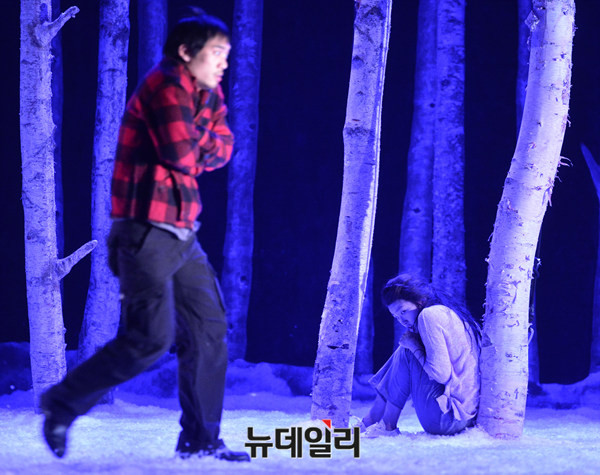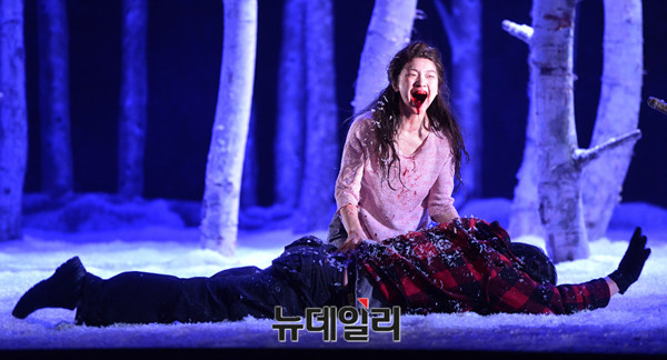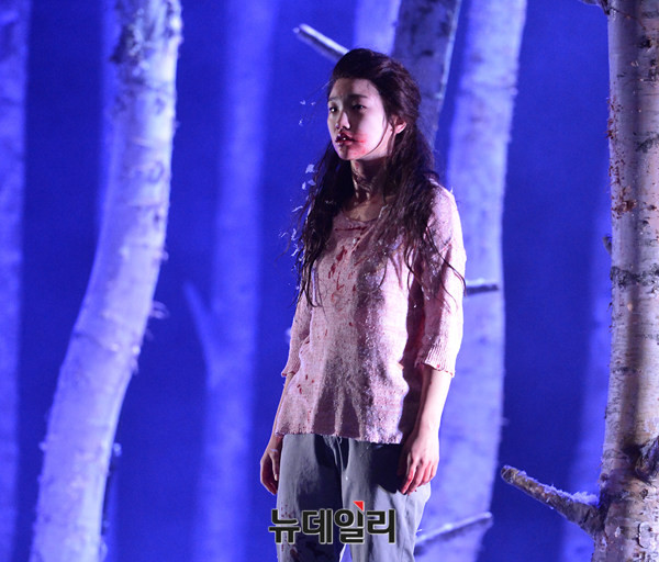연극 '렛미인(Let The Right One In)' 프레스콜이 21일 오후 서울 서초구 예술의전당 CJ토월극장에서 진행됐다. 하이라이트 시연에서 배우 박소담이 열연하고 있다.