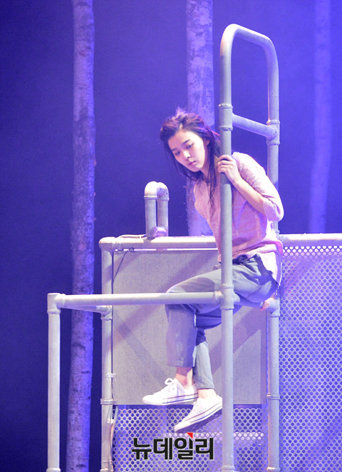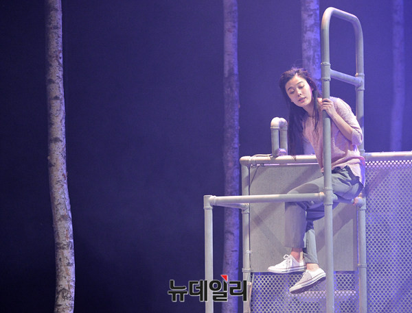 연극 '렛미인(Let The Right One In)' 프레스콜이 21일 오후 서울 서초구 예술의전당 CJ토월극장에서 진행됐다. 일라이 역을 맡은 배우 이은지가 하이라이트 시연을 하고 있다.
