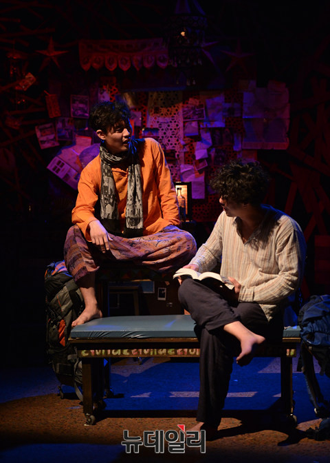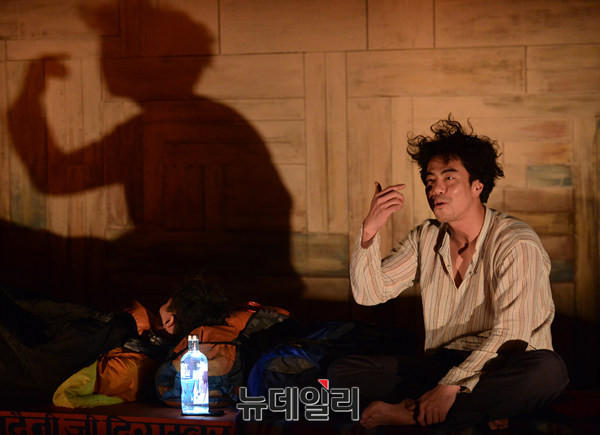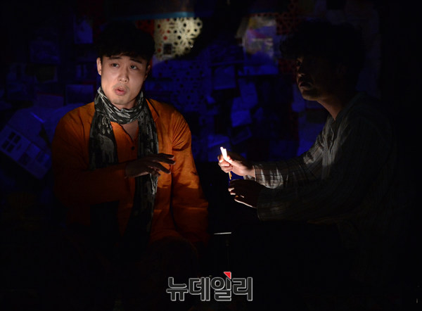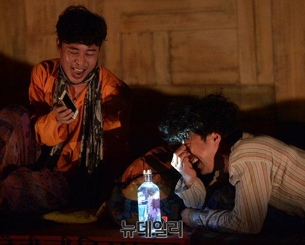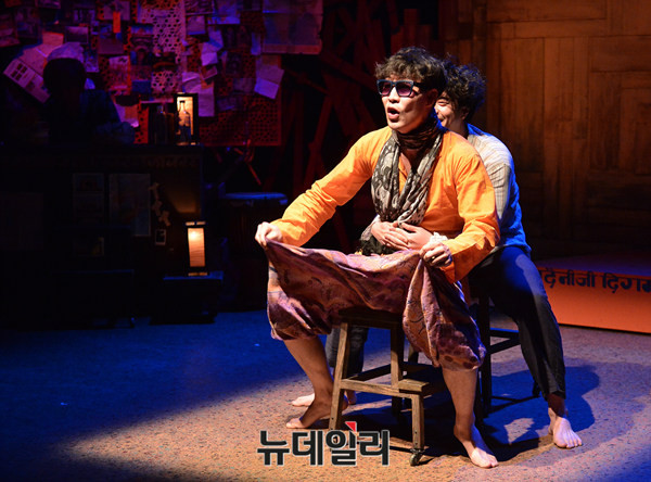 연극 '인디아블로그(작,연출 박선희)' 프레스콜이 13일 오후 서울 대학로 아트원씨어터에서 열린 가운데 배우 박동욱과 전석호가 열연하고 있다.