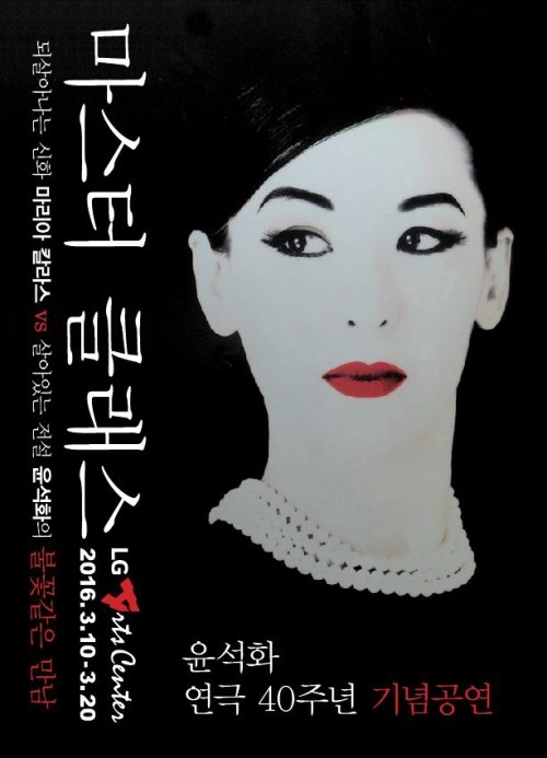배우 윤석화가 연극인생 40주년 기념 공연을 펼친다. 연극 애호가들이 손에 꼽는 걸작 '마스터 클래스'를 18년 만에 선보이는 것.전설의 오페라 가수 마리아 칼라스의 실화를 바탕으로 구성된 연극 '마스터 클래스'는 미국의 저명한 희곡작가 테렌스맥날린의 작품으로, 1996년 토니어워즈 최우수 희곡상을 받은 역작이다.윤석화는 1998년 마리아 칼라스로 완벽 변신해 이해랑 연극상을 수상했으며, 당시 뮤지컬 스타 류정한이 공개오디션을 통해 테너 역으로 출연한 바 있다.지난해 연극계의 대부 임영웅 연출의 60주년 헌정공연 '먼 그대' 무대에 윤석화가 배우로 올랐다. 이번에는 임영웅 연출이 '마스터 클래스'를 진두지휘 한다. 또, 전(前) 경기필하모닉 오케스트라 예술단장인 마에스트로 구자범이 음악감독과 반주자 역을 맡는다.윤석화 데뷔 40주년 기념 연극 '마스터 클래스'는 3월 10일부터 20일까지 LG아트센터에서 공연한다.[연극 '마스터 클래스' 포스터, 사진=돌꽃컴퍼니]