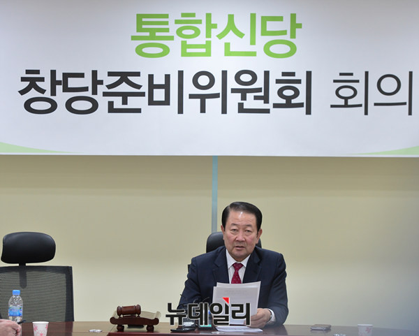 통합신당 박주선 창당준비위원장이 14일 오전 국회 의원회관에서 열린 창당준비위원회의에서 모두발언을 하고 있다. 박주선 위원장은 이날 권노갑 전 더불어민주당 고문, 정동영 전 장관을 만난 사실을 밝히며 "1월 말까지 신당을 통합하겠다"는 뜻을 드러냈다.
