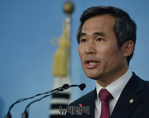 더불어민주당 김승남(전남 고흥군·보성군) 의원이 14일 오전 국회기자회견장에서 기자회견을 열고, "더불어민주당을 탈당해 안철수 국민의당으로 합류한다"고 밝혔다. 김 의원이 탈당의사를 밝히고 있다.