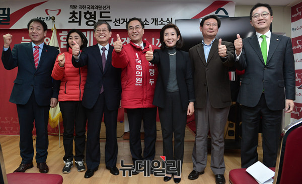 새누리당 최형두 예비후보 선거사무소 개소식이 14일 오후 경기 의왕시 오전동에 위치한 선거사무소에서 진행된 가운데 참석자들이 최 예비후보와 포토타임을 갖고 있다.