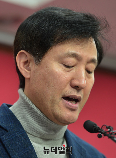 오세훈 전 서울시장이 17일 오후 서울 여의도 새누리당사에서 출마 기자회견을 열고 종로구 출마를 발표하고 있다.
