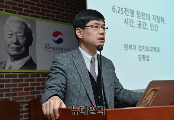 제59회 이승만포럼이 19일 오후 서울 중구 정동제일교회 아펜젤러홀에서 열렸다. 이날 포럼은 연세대 이승만연구원 김명섭 원장이 발표자로 나서 '6.25전쟁 정전의 지정학:시간, 공간, 인간'을 주제로 강연했다.