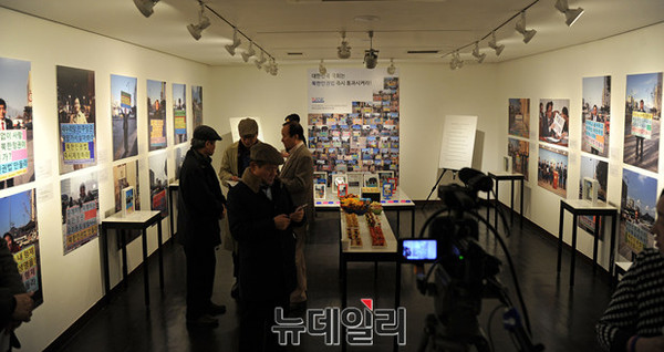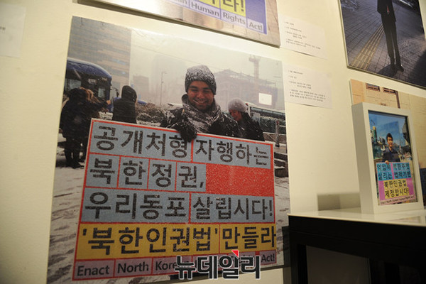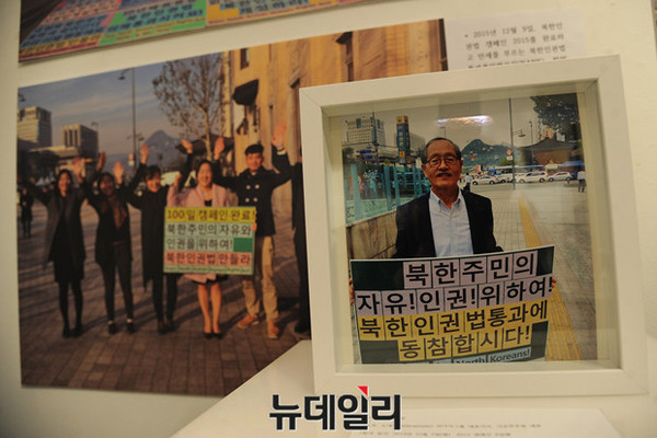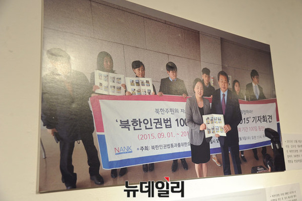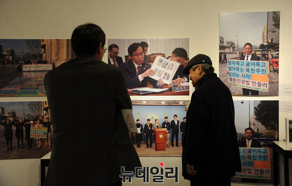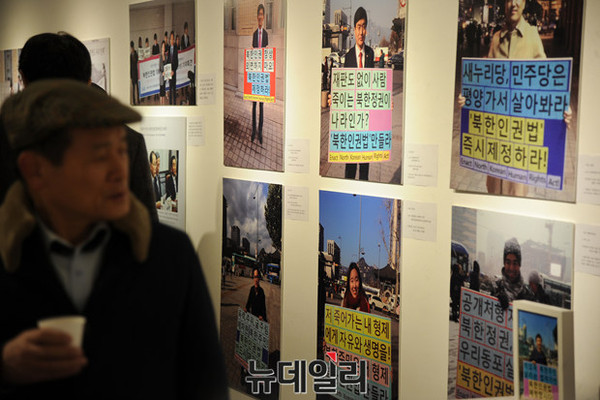 북한인권법 제정을 위한 100일 캠페인 사진전 오프닝이 20일 오후 서울 인사동 통인 갤러리에서 열렸다.'북한인권법통과를위한모임(북통모 NANK:Now Act for North Koreans! 지금! 북한주민을 위해 행동해요!)'가 지난 3년간 진행해온 '북한인권법 100일 국민캠페인' 사진전은 국회에서 11년째 제정되지 못 하고 있는 '북한인권법'의 제정을 촉구하기 위해 마련됐다.이번 전시는 제320회 정기 국회가 시작하던 지난 2013년 9월 30일 광화문 동아일보 사옥 앞에서 시작해 2014년 1월 7일까지 100일간, 401명(중복참여자 합계 715명)의 대한민국 국민들이 참여했다. 또 제337회 정기 국회가 시작하던 지난 2015년 9월 1일부터 12월 9일까지 100일간 국민캠페인을 진행해 왔다.전시는 오는 26일까지 인사동 통인 갤러리에서 무료로 관람 할 수 있다.