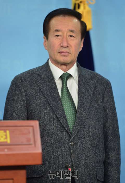 유선호 전 의원이 20일 오후 국회기자회견장에 입장해 기자회견을 기다리고 있다.