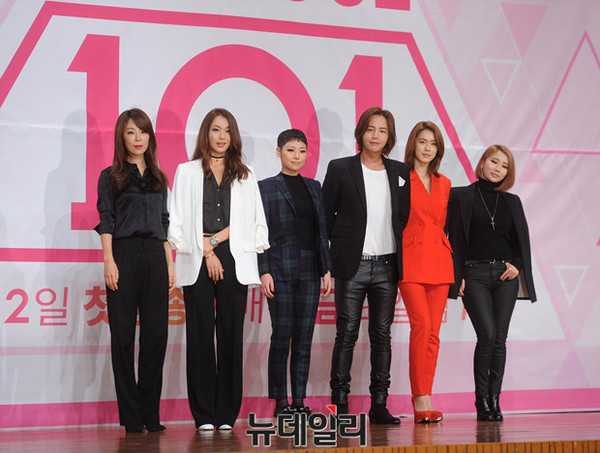 ‘프로듀스101’에 참여한 트레이너들이 21일 서울 여의도 63컨벤션에서 열린 ‘Mnet 프로듀스101’ 제작발표회에 참석해 포즈를 취하고 있다.이날 행사에는 국내 46개 기획사에서 모인 총 98명의 연습생들이 모두 참석해 눈길을 끌었다. 총 101명이 지원했으나 도중 3명이 각자의 사정으로 인해 하차했다.‘프로듀스101’은 아이돌 인문반 연습생 101명을 대상으로 유닛 걸그룹을 만드는 국민 걸그룹 육성 프로그램이다. 장근석이 프로그램의 진행을 맡고 대국민투표로 데뷔 멤버를 발탁하고 콘셉트와 그룹명 등을 정한다. 오는 22일 첫 방송을 시작으로 매주 금요일 오후 11시 총 11회에 걸쳐 브라운관을 찾는다.