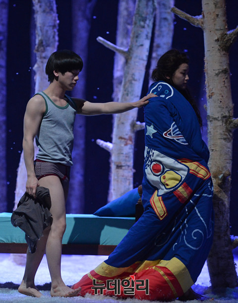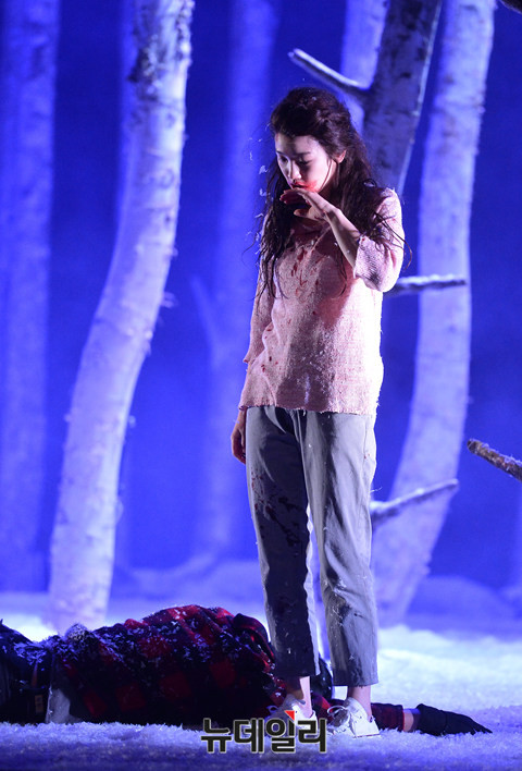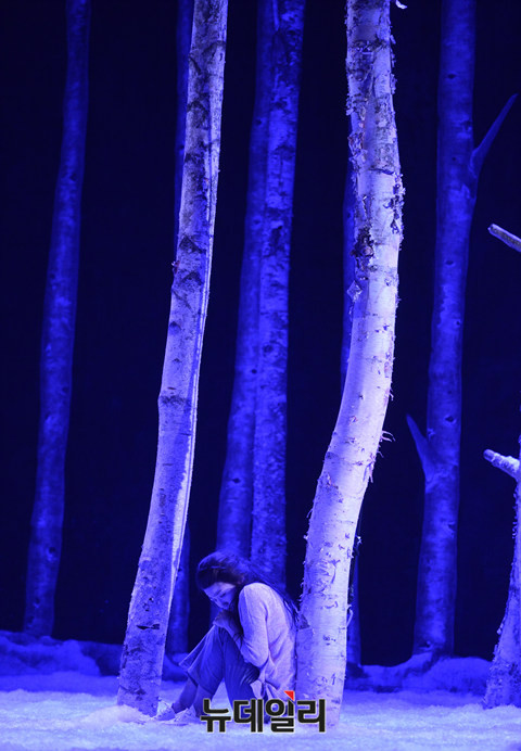 연극 '렛미인(Let The Right One In)' 프레스콜이 21일 오후 서울 서초구 예술의전당 CJ토월극장에서 진행됐다. 배우 박소담이 뱀파이어소녀 일라이 역을 연기하고 있다.