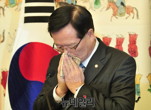 정의화 국회의장이 21일 오후 서울 여의도 국회 접견실에서 국회 선진화법, 선거구 획정 등 정국 현안과 관련한 기자회견에서 질문에 답하고 있다.