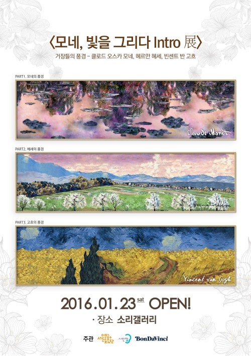 '모네, 빛을 그리다 intro展'이 시민청 소리갤러리에서 1월 23일부터 6월 30일까지 열린다.이번 전시는 새로운 패러다임을 선보인 본다빈치의 전시가 일반인들에게 힐링을 주고 있다는 점이 소리갤리리가 추구하는 콘셉트와 맞아 시민청의 특별제안으로 함께 진행하게 되었다.소리갤러리는 현대인들에게 위로를 주기 위해 만든 도심 속 힐링 공간으로, 자연을 주제로 한 디디어 전시를 통해 관람객들에게 색다른 경험을 제공하고 있다.'모네, 빛을 그리다 intro展'은 용산에서 개최하고 있는 '인상주의 거장들과 함께하는 모네, 빛을 그리다 展'의 소개전이다. 본다빈치가 개최했던 '반 고흐: 10년의 기록展', '헤세와 그림들 展'의 작가들을 조명한 별도의 특별영상으로 구성된다.일반인들에게 무료로 개방되는 본 전시는 클로드 모네가 웅장하게 그렸던 자연의 풍경과 더불어 거장들을 만날 수 있는 기회다. 또, 체험존에서는 모네의 자화상 앞에서 사진을 찍을 수 있는 미디어 포토존이 마련된다.본다빈치 김려원 대표는 "잠시 머물고 가는 이 순간, 이곳에서 이들이 사랑했던 자연과 동시대의 여정을 컨버전스 아트를 통해 경험하면서 건조하고 숨 가쁜 일상 속의 힐링의 시간을 가질 수 있기를 바란다"고 전했다.[사진=본다빈치]