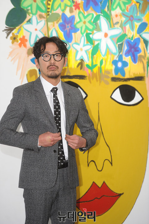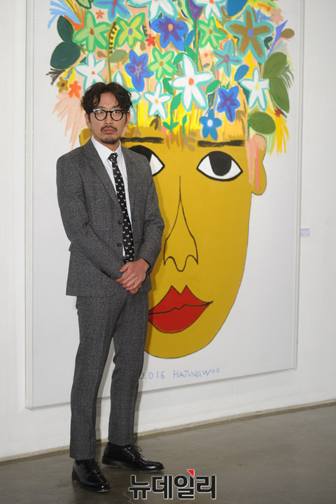 배우 하정우가 22일 오후 서울 강남구 신사동 호림아트센터에서 열린 네스프레소와 함께하는 '#WhatElse' 전시회에 참석해 자신의 작품 앞에서 포즈를 취하고 있다.