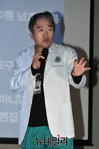 공정한 병역의무 이행을 위한 국민총협의회(이하 병국총)이 주최하는 박원순 시장 아들 박주신씨 병역비리 의혹 대국민 보고대회가 23일 오후 부산 벡스코에서 진행됐다.이날 보고대회 2부에서 남동기 교수가 의학적 소견을 발표하고 있다.보고대회에는 변희재 미디어워치 대표, 황장수 미래경영연구소장, 신혜식 독립신문 대표, 최대집 의료혁신투쟁위원회 공동대표, 남동기 전 아주대 의대 교수, 박성현 뉴데일리 주필 등이 참여했다.