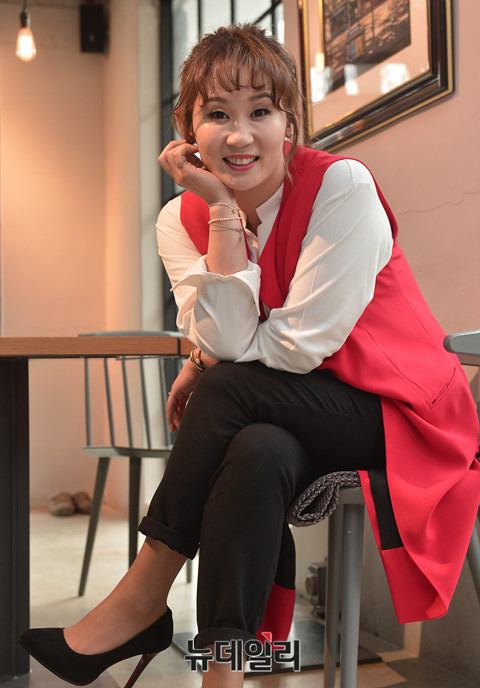 배우 김선영과 인터뷰가 지난 26일 오후 서울 종로구의 한 카페에서 진행됐다. 인터뷰에 앞서 배우 김선영이 포토타임을 갖고 있다.
