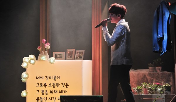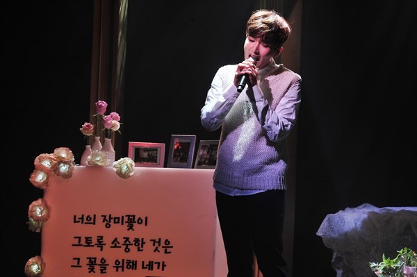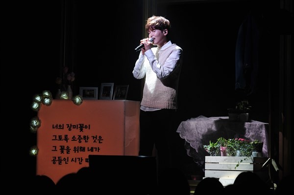 슈퍼주니어의 멤버 려욱이 25일 오후 서울 용산구 한남동 현대카드 언더스테이지에서 열린 솔로 앨범 '어린왕자' 쇼케이스에 참석해 노래를 부르고 있다.