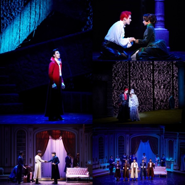 뮤지컬 '드라큘라'가 화려한 무대 메커니즘과 배우들의 폭발적인 가창력을 자랑하며 첫 공연을 성공적으로 마무리했다.약 2년 만에 돌아온 뮤지컬 '드라큘라'는 이번 공연에서 드라마의 개연성을 높이고 완성도 높은 무대를 만드는 데 주력했으며, 더욱 탄탄해진 스토리로 연일 호평을 받고 있다.초연에 이어 '드라큘라' 역을 맡은 김준수와 박은석은 한층 성숙하고 깊이 있는 연기를 선보이며 무대를 장악했다. 새롭게 합류한 임혜영, 강홍석, 진태화, 이예은 역시 색다른 매력을 발산해 극에 활력을 불어넣었다.지난 26일에는 뮤지컬 '드라큘라' 하이라이트 장면을 네이버 TV캐스트를 통해 생중계해 열렬한 호응을 이끌어냈다. 작품 특유의 화려하고 에너지 넘치는 무대를 온라인으로 즐길 수 있어 뜨거운 관심을 보인 것.새롭게 공개된 '드라큘라' 박은석과 '미나' 임혜영의 'Loving you keeps me alive' 뮤직비디오 영상에도 이목이 쏠렸다. 애절하고 서정적인 넘버 'Loving you keeps me alive' 뮤비는 공식 SNS를 통해 감상할 수 있다.한편, 뮤지컬 '드라큘라'는 드라큘라가 400년 동안 잊지 못했던 여인 미나를 다시 만나게 되면서 벌어지는 가슴 아픈 사랑 이야기를 그린다. 2월 9일까지 세종문화회관 대극장에서 공연된다.[사진=오디컴퍼니]