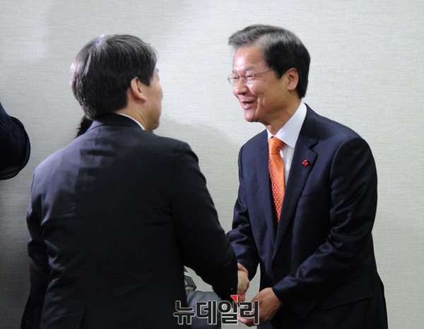 [포토] 기조회의서 인사하는 안철수-천정배