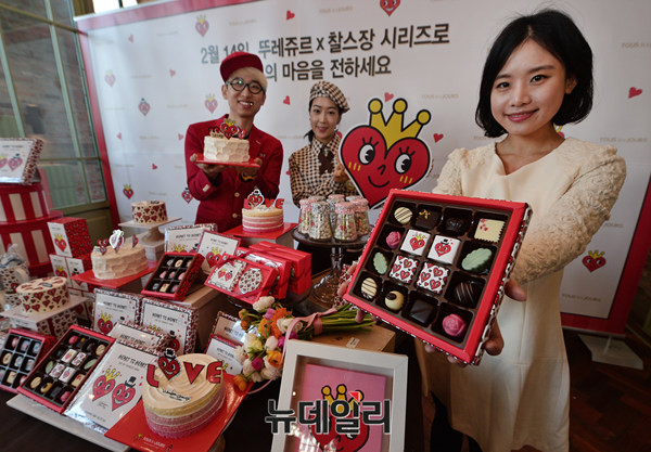 뚜레쥬르가 27일 오전 서울 중구 뚜레쥬르 제일제당사옥점에서 팝 아티스트 찰스장의 해피하트를 적용한 밸런타인데이 시즌제품 'Heart to Heart'시리즈를 선보였다.