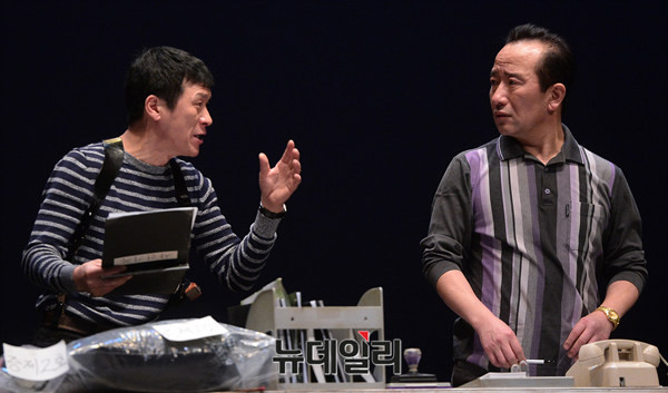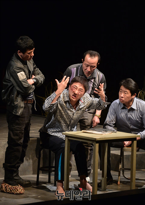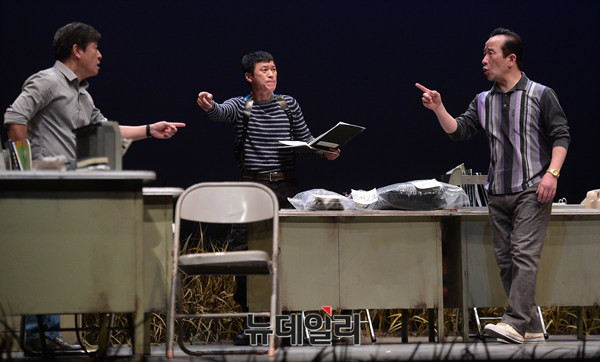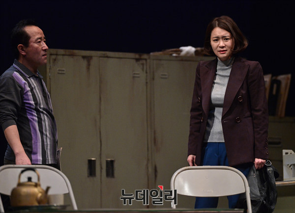 영화 '살인의추억'의 원작인 연극 '날보러와요(작,연출 김광림)' 프레스콜이 27일 오후 서울 명동예술극장에서 열린 가운데 출연배우들이 열연하고 있다.
