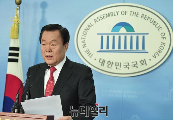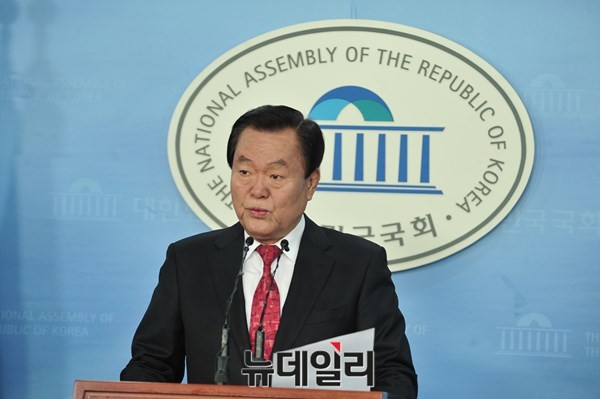 김경재 전 의원이 1일 오후 서울 여의도 국회 정론관에 기자회견을 갖고 한국자유총연맹 제16대 회장 출마를 선언하고 있다.