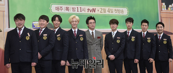 tvN 연기교육 리얼리티 '배우학교(연출 백승룡)' 제작보고회가 3일 오후 서울 강남구 임피리얼팰리스 호텔에서 열린 가운데 출연배우들이 포토타임을 갖고 있다. 사회는 김일중 전 SBS 아나운서가 맡았다.
