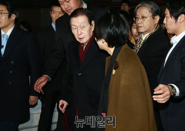 신격호 롯데그룹 총괄회장이 3일 오후 서울가정법원에서 열린 성년후견인 개시 심판 청구에 참석하기 위해 주차장으로 들어서고 있다.