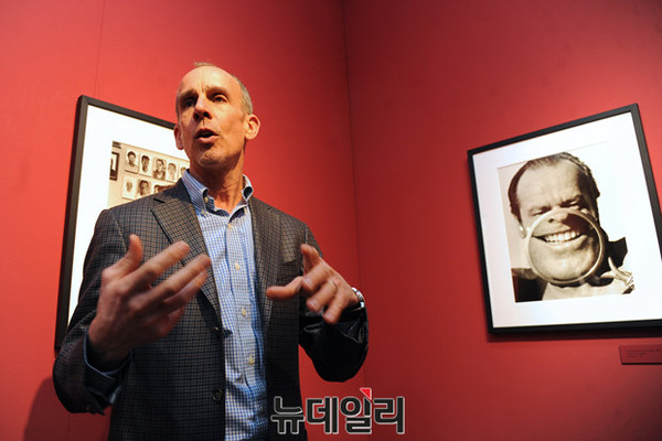 ‘마돈나를 춤추게 한 허브릿츠’ 사진전 기자간담회가 4일 오후 서울 세종문화회관 미술관1층에서 열렸다. 이날 프랭크 콘시딘 큐레이터가 작품설명을 하고 있다.